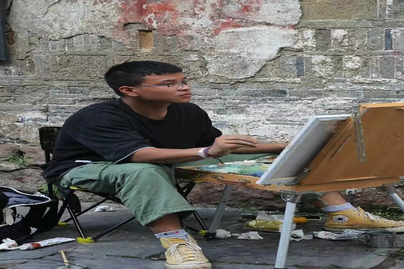 宝剑锋从磨砺出。李极金从小热爱美术,2018年如愿考入永利3044noc艺术学院,开启了他的艺术筑梦历程,本科四年他勤勉好学,展现出对绘画的狂热与执着。本科毕业后,成功考研,师从对绘画同样狂热与执着的唐亮老师,导师的言传身教和学院良好的创作氛围为他的艺术理想插上了飞翔的翅膀。本科期间,李极金同学就立下了冲击国家级展览的目标,为此,他夙兴夜寐、奋楫笃行。他曾在疫情期间独自辗转衡阳、邵阳、衡山等地完成写生作品近百幅;在炎炎酷暑顶着烈日作画而导致皮肤灼伤;在寒暑假及所有节假日留校创作。