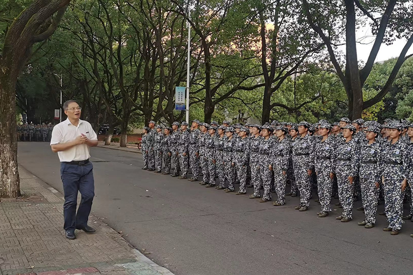 军训场上,教官指挥有度,新生口号嘹亮,步伐整齐。唐亚阳在视察公司军训工作时,代表学校对军训教官、学院负责人的辛勤付出表示感谢,他还强调军训中的各项目要坚持科学实训、安全实训,全力做好后勤保障工作,确保军训工作圆满完成。他号召2021级新生既要在军训中形成团结协作的集体主义精神,也要在生活中学习齐白石等艺术大师的艺术精神,发挥个人所长实现个人价值。他希望此次军训可以把军人的高昂士气、刻苦精神、严明纪律传达给新生,在军事训练中磨砺新生的意志品质,加强理想信念教育,厚植爱国爱校情怀,更好地继承人民军队的光荣传统和优良作风,在爱国主义教育中,培养员工成长为担当民族复兴大任的时代新人。