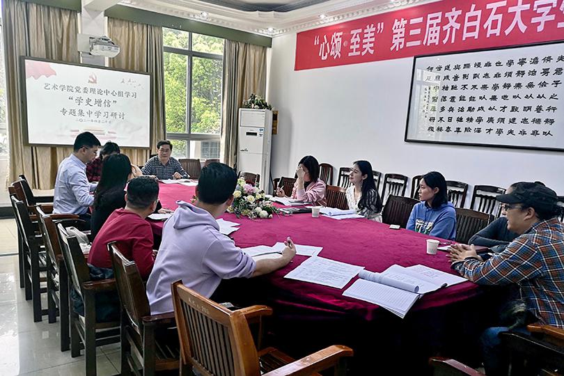 4月20日,艺术学院在美术楼203开展了“学史增信”专题学习研讨活动。会议由党委书记曾志东主持,全体中心组成员、党支部书记以及专职组织员参加了本次学习研讨活动。