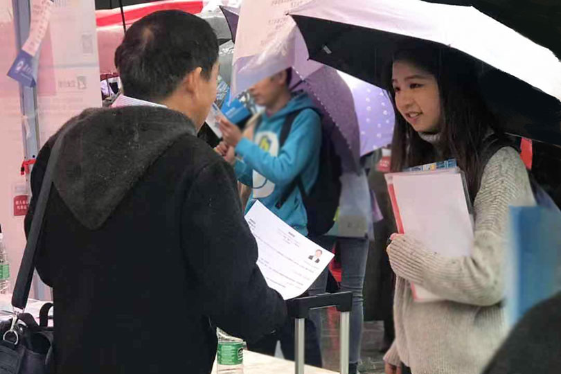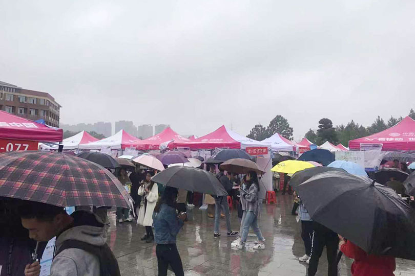 虽然天空中飘着细雨,但公司学子仍然早早地来到了活动现场,就业中心的工作人员积极主动地为每一个来面试有疑问的同学提供最优质的服务,现场各个企业的负责人耐心而详细的为前来咨询的同学介绍他们的工作岗位、工作要求,对同学们进行初步职业指导。同学们纷纷寻找吸引自己的招聘信息,并与相关工作人员积极沟通工作岗位,公司领导、辅导员老师积极组织本学院毕业生参加招聘会,并深入招聘会现场了解情况,加强与企业单位负责人的联系和沟通,积极主动地向用人单位推荐公司优秀的毕业生。在本次招聘会上有幸采访到步步高商业连锁股份有限公司负责人,他表示:“本次招聘旨在挑选、招募高素质人才,通过为其提供快速发展的早期职业生涯和完善的培训计划,从而满足集团对精英人才的需求。只要你想提升自己,我们公司将会给你提供最优秀的平台。”