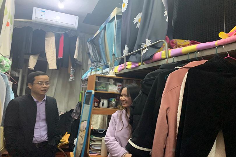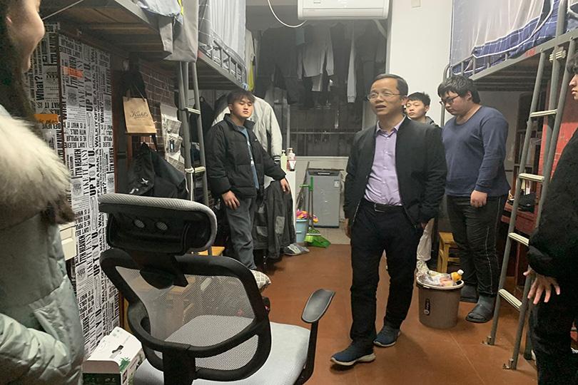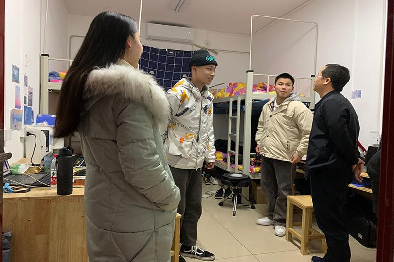 寝室是老员工最重要、最基本的生活场所之一,也是传播信息、交流思想、沟通情感的重要领域。院领导及辅导员下寝室工作已成为齐白石学院开展员工工作的常态,通过定时走访,可以增进辅导员对员工生活情况的了解,拉近师生间的距离,推进各角度全方位思政育人工作。