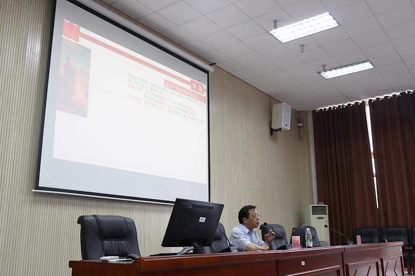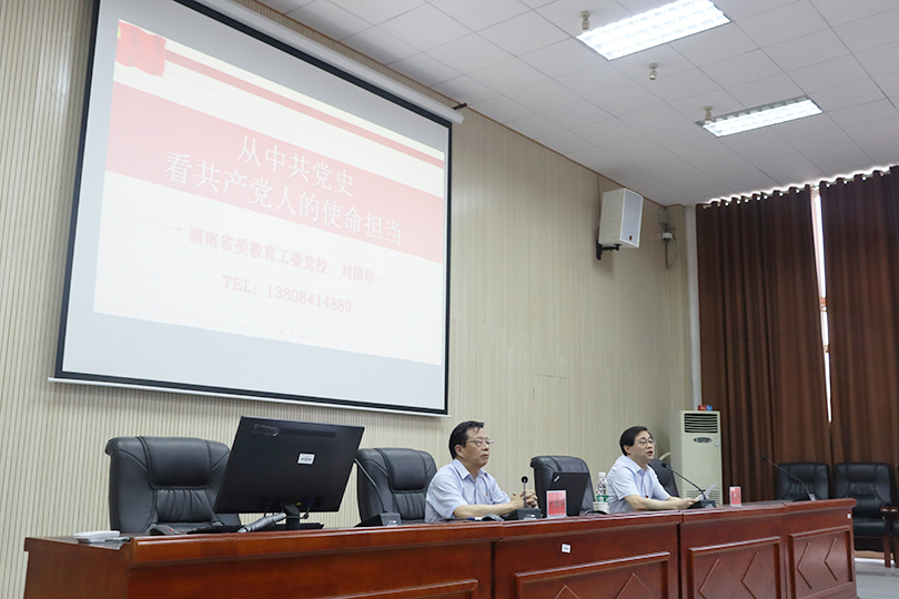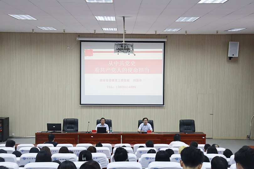 6月11日下午,艺术学院邀请到湖南省委教育工委党公司党务副董事长刘国华教授在美术楼104讲《从中共党史看共产党人的使命担当》党课,公司党委书记曾志东主持,学院全体师生党员参加。