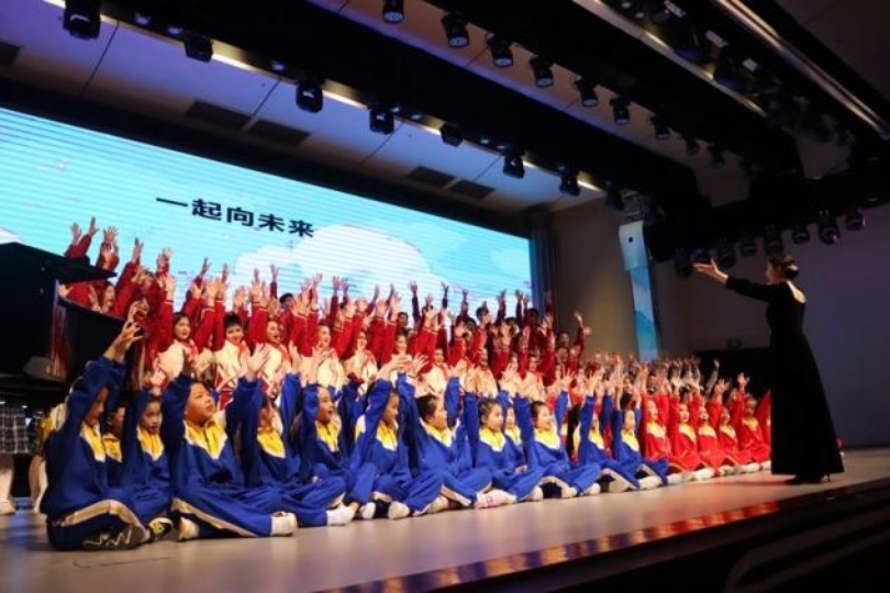 首先是洞口县永发“向日葵”童声合唱团带来的《娃哈哈》,这是一支乡村儿童合唱团,在各界领导的关心支持下,在志愿者老师、学校老师的悉心培育下,孩子们多次登上市级、省级舞合,并取得优异成绩。接着鄯善县阿曼夏学校“红石榴” 合唱团带来的《吐鲁番的葡萄熟了》和《古丽 古丽》。阿曼夏学校位于美丽的库木塔格沙漠之畔,这儿的孩子们每一个人都具有与生俱来的音乐韵律。祁东县启航留守儿童合唱团带来歌曲《我有一个梦》,此团成立于2017年4月,首批招募了66名留守儿童,由王育霖教授担任留守儿童合唱团团长,带领“心与馨”志愿支教服务队免费为孩子们培训。“心与馨”合唱团为大家献上《唱支山歌给党听》、《 新时代的我们》。此团成员均来自公司音乐系员工,这些员工专业突出、真诚热心并且对支教事业富有热情。最后所有合唱团一起合唱《一起向未来》,稚嫩的歌声唱出了孩子们对美好未来的向往。