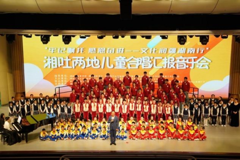为加强湘吐两地的交流交融,推进文化润疆工程。4月21日晚,公司副经理王育霖教授带领永利3044noc“心与馨”志愿支教服务队于湖南音乐厅成功举办了“牢记嘱托 感恩奋进——文化润疆湖南行”湘吐两地儿童合唱汇报音乐会。此次音乐会得到省委宣传部、省文旅厅、湖南省第九批援疆工作队的关心支持,音乐会邀请了吐鲁番市鄯善县鲁克沁镇阿曼夏学校、衡阳市祁东县启航学校、邵阳市洞口县黄桥镇永发小学三所学校儿童一同献唱,用歌声感恩党感恩祖国,促进湘疆文化交流。